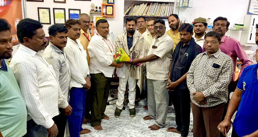 నంద్యాల : నోటిని ఆరోగ్యంగాఉంచుకుంటే ఎన్నో రకాల రోగాలను అరికట్టవచ్చని కెఎం రెడ్డి దంత వైద్యశాల అధినేత డాక్టర్ కెఎం. రెడ్డితెలిపారు. స్థానిక పట్టణంలోని కెఎం రెడ్డి దంత వైద్యశాలలో నవ్యాంధ్ర బైక్ మెకానిక్ అసోసియేషన్ సభ్యులకు ఉచిత దంతఅవగాహన కార్యక్రమం నిర్వహించారు. ఈ కార్యక్రమంలో దాదాపు 50 మంది బైక్ మెకానిక్ లకుఉచిత దంత పరీక్షలు నిర్వహించి ఉచిత దంత వైద్యాన్ని అందించారు. ఈ సందర్భంగా డాక్టర్ కెఎంరెడ్డి బైక్ మెకానిక్ లకు పలు సూచనలు చేశారు.దంతాలను ఎలా పరిశుభ్రం చేసుకోవాలో డెమోప్రదర్శన ద్వారా చూపించారు. దంత సంరక్షణ చర్యలగురించి అవగాహన కల్పించారు, దంతాలు పరిశుభ్రంగా ఉంచుకోకపోతే జరిగే నష్టాలను వివరించారు.కనీసం ఆరు నెలలకు ఒకసారి దంత పరీక్షలు చేయించుకోవాలని సూచించారు. పొగ తాగడం, గుట్కా, పాన్ మసాలా వల్ల జరిగే నష్టాలు వివరించి అవగాహన కల్పించారు. అనంతరం డాక్టర్ కెఎం. రెడ్డి మాట్లాడుతూ మానవ శరీరంలో గుండె, ఊపిరితిత్తులు, కిడ్నీలు అతిముఖ్యమైనవని దంతాలకు కూడా వాటంత ప్రాధాన్యంఉందన్నారు. 32 పన్నుల్లో ఒకటిపోయినా ఇబ్బంది ఏమి ఉండకపోవడంతో అందరూ తేలికగా తీసుకుంటారని అయితే మానవ శరీరంలో ఉన్న అవయవాలు సమర్ధవంతంగా పనిచేసేందుకు శక్తినిచ్చేది మాత్రం దంతాలే అన్నారు. ఆహారాన్నినమిలి మింగడానికి ఇది దోహద పడుతుందని, అప్పుడే శరీరానికి కావాల్సినంత శక్తి సమకూరుతుందని తెలిపారు. నోటిని ఆరోగ్యంగా ఉంచుకుంటే ఎన్నో రకాల రోగాలను అరికట్టవచ్చని తెలిపారు. అనంతరం బైక్ మెకానిక్ అసోసియేషన్ నాయకులు రాష్ట్ర ఇన్చార్జి అధ్యక్షుడు నూర్ భాషా, ముఖ్య సలహాదారుడు రాముడు, వన్ టౌన్ అధ్యక్షుడు మహమ్మద్ రఫీ ,టూ టౌన్ అధ్యక్షుడు సూరి , ఉపాధ్యక్షుడు సౌదీ మహమ్మద్ రఫీ, సెక్రటరీ గౌస్ మొహిద్దిన్, ట్రెజరీ అనిల్ ,జాయింట్ సెక్రటరీ చంద్రశేఖర్ ఆచారి, 10 మండలాల ఇన్చార్జి అన్వర్ భాష, 20 మండలాల ఇంచార్జ్ బాలి రెడ్డి, సభ్యులు ఉచిత దంత పరీక్షలు నిర్వహించిన డాక్టర్ కె.ఎం. రెడ్డి, డాక్టర్ సింధుజ,డాక్టర్ శ్రావణి లను ఘనంగా సత్కరించారు.