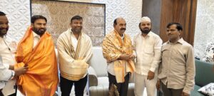 నంద్యాల : ఫెన్సింగ్ లో ఏషియన్ గేమ్స్ నందు సత్తా చాటిన పబ్బతి చిన్మయి శ్రేయ అంతర్జాతీయంగా మరిన్ని విజయాలు సాధించాలని మైనార్టీ శాఖ మంత్రి ఎన్ ఎం డి ఫరూక్ ఆకాంక్షించారు. సోమవారం పద్మావతి నగర్ లోని ప్రముఖ ఆర్యవైశ్య నాయకులు బిల్డర్ పబ్బతి వేణుగోపాల్ స్వగృహానికి మైనార్టీ శాఖ మంత్రి ఫరూక్, శాప్ చైర్మన్ రవి నాయుడు, టిడిపి యువ నాయకులు ఎన్ ఎండి ఫిరోజ్, తెలుగుదేశం పార్టీ నాయకులు ఇలియాస్ ,శమీముల్లా తదితరులు విచ్చేశారు .అనంతరం ఎన్ ఎం డి ఫరూక్ ఫెన్సింగ్ క్రీడాకారుని పబ్బతి చిన్మయి శ్రేయతో ఫెన్సింగ్ క్రీడా మరియు ఎక్కడ కోచింగ్ తీసుకున్నారని వివరాలను స్వయంగా అడిగి తెలుసుకున్నారు.ఫెన్సింగ్ క్రీడలో నంద్యాల జిల్లా కీర్తిని అంతర్జాతీయంగా మారు మోగేలా చేశావని ప్రత్యేకంగా అభినందించారు.అనంతరం శాలువా కప్పి సత్కరించారు.పబ్బతి వేణుగోపాల్, అడ్వకేట్ అపర్ణ దంపతులు మంత్రి ఎన్ ఎండి ఫరూక్ , శాప్ చైర్మన్ రవి నాయుడు, టిడిపి నాయకులు ఎన్ ఎండి ఫిరోజ్ లను సత్కరించారు.