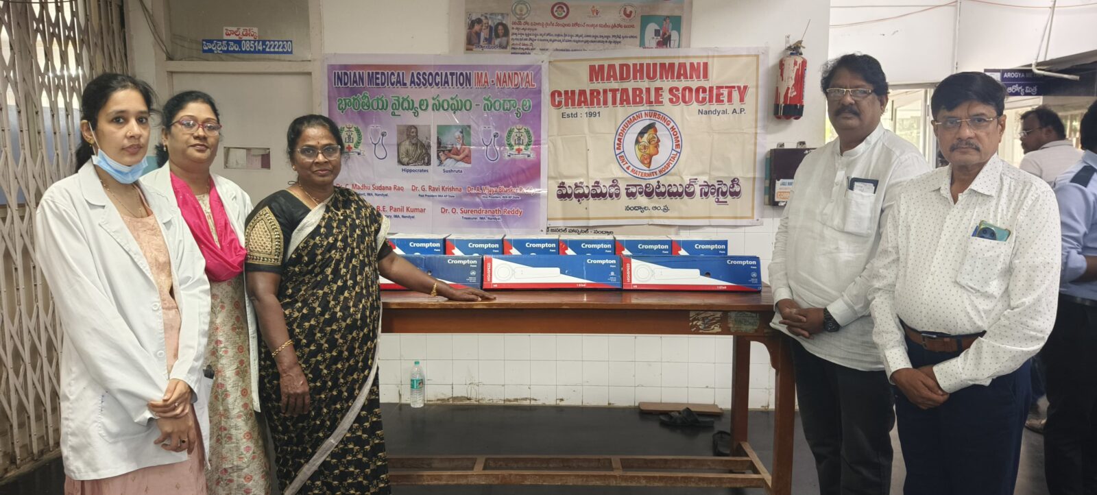 నంద్యాల : స్థానిక పట్టణంలోని జిల్లా ప్రభుత్వ జనరల్ ఆసుపత్రి ఎం సి హెచ్ బ్లాక్ లో రోగులు వేచి ఉండే హాల్ లో ఏర్పాటు చేయడానికి నంద్యాల ఐఎంఏ ఆధ్వర్యంలో మధుమణి నర్సింగ్ హోమ్, మధుమణి చారిటబుల్ సొసైటీ తరపున 15 వేల రూపాయల విలువ చేసి ఆరు సీలింగ్ ఫ్యాన్లు శనివారం అందజేశారు. జిల్లా ప్రభుత్వ జనరల్ ఆసుపత్రి సూపరింటెండెంట్ డాక్టర్ మల్లీశ్వరి కి ఐఎంఏ నంద్యాల అధ్యక్షులు, మధుమణి చారిటబుల్ సొసైటీ చైర్మన్ డాక్టర్ మధుసూదనరావు, ఐఎంఏ రాష్ట్ర మాజీ అధ్యక్షులు డాక్టర్ రవి కృష్ణ ప్రభుత్వాసుపత్రి క్యాజువాలిటీ విభాగం దగ్గర అందజేశారు. ఈ సందర్భంగా డాక్టర్ మల్లీశ్వరి ఐఎంఏ కు ధన్యవాదాలు తెలిపారు. డాక్టర్ మధుసూదన రావు,డాక్టర్ రవి కృష్ణ మాట్లాడుతూ ఐఎంఏ తరపున చేపట్టే అనేక సేవా కార్యక్రమాలలో భాగంగా ఈరోజు ఎం సి హెచ్ ( తల్లి పిల్లల ఆసుపత్రి) భవనంలో రోగులు వేచి ఉండే స్థలంలో ఏర్పాటు చేయడానికి సీలింగ్ ఫ్యాన్లు అందజేయడం జరిగిందని తెలిపారు. భవిష్యత్తులో కూడా ప్రభుత్వ ఆసుపత్రికి వచ్చే ప్రజల సౌకర్యార్థం సహకారం అందజేస్తామన్నారు.